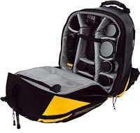 have camera will swim This backpack actually is waterproof. I litterally went swimming in the BVI with my medium format equipment safely inside. Let me just repeat that, you can literally jump off the boat and swim to shore in waves with this thing and not a drop gets in. It uses a special zipper to seal itself off, not the more common method of folding over the mouth of the bag. Carrying ergonomics are also superb: the bag offers many adjustments and a real well-patted hipbelt, essentially like the bigger mountaineering backpacks.This is one of those rare products that does everything right.If you are looking for protection from water for your camera gear this is the only currently made bag, as far as i know. I do have a discontinued German model, and find the Lowepro much better (ja, obwohl ich ein Deutscher bin). My one caveat is: if you do not need this level of protection from the elements, you would be better off with another bag, because the stiff plastic and tight zipper make it less then ideal in terms of getting at your stuff quickly. Wet, wild...and yellow This is a fantastic idea! I carry digital camera gear, hard drives and LOTS of rechargeable batteries onto boats to take photographs underwater. It has all become much easier with a waterproof backpack... and it seems to be accepted as hand luggage by airlines. This big version carries a lot, two cameras, two flashguns and two lenses and an aluminium camera housing. A wildlife photographer could get almost anything into the pack, and sling a tripod on the outside, with lunch in the pocket. The waterproof layer has a zip that would not look out of place on a drysuit, and seems just as efficient at keeping water out. The backpack looks bulky, but it's comfortable when it's adjusted. My only reservation is that the pack is bright yellow, and stands out in a crowd, which isn't ideal when it's filled with $$000s of gear. It would be easy to find if you dropped it in the sea, though, and Lowe claim that it would float, protecting the gear inside! Swim with your photo gear with confidence I bought this bag specifically for a big trip to Europe, Africa and Asia, which included a stop in Thailand, where I was expecting to spend a lot of time on boats that weren't particularly seaworthy and I was particularly keen to visit the Emerald Cave, which involves a 200m swim through a cave to an enclosed beach. Over the course of a month, I flew 13 flights and covered a distance of over 45,000km in the air, carrying in excess of 15kgs of gear. I was able to fit the following camera equipment in the bag with ease: * Canon EOS 1Ds Mk III body * Canon 24-70 2.8L lens * Canon 70-200 2.8L IS lens * Canon 100 2.8 macro lens * Canon 16-35 2.8L lens * Canon 1.4x extender * Canon 580EX II flash * Wolverine 250GB portable HDD * Various other small accessories, including CF cards, etc. The bag also has an external compartment with plenty of zippers where I was able to fit a 15" IBM laptop, along with books, travel documents, noise-cancelling headphones. While I occasionally had to remove the laptop to fit the bag into an overhead locker, I never had any problems with airport security or getting it on to the plane. The bag is also extremely comfortable to carry around and has solid chest and waist straps to distribute the load. Most innovative is the back harness system which can be eaily adjusted up or down based on your height. The bag also has a hidden fold-out tripod holder down the centre of the bag. Of course, the best feature of the bag is the dry-suit zip. It took a little time to properly lubricate it with silicone grease, but once complete, it really has a very solid feel. While I was a little nervous climbing into the ocean with all my gear, it worked perfectly. The bag floated high in the water and not a drop of water penetrated the bag. The self-draining pockets on the outside also worked really well. There are a few minor downsides: First, the main zip is really heavy duty and requires some effort to open and close. This means it can be difficult to get your gear in and out quickly. There is a secondary standard (non-waterproof) zip that you can use instead but the bag tends to sag without the main zip closed. Second, the yellow colour gets dirty easily. Finally, the exterior compartment is not waterproof, so if you plan to go for a swim, you'll need to remember to remove everything from that compartment. Overall, this is another excellent bag by Lowepro. The dry-zuit zip really works superbly. Some of the design features - particularly the height adjustable harness and waist/chest straps - are superior to those on more conventional models, such as the Computrekker AW Plus. I would have no hesitation recommending this bag to anyone planning to take lots of gear into extreme climates, be it snow, water or sand. I have to admit, however, that I will probably continue use my other Computrekker, Rover and Slingshot bags on a day-to-day basis as they are simply easier to get gear in and out of the bag.